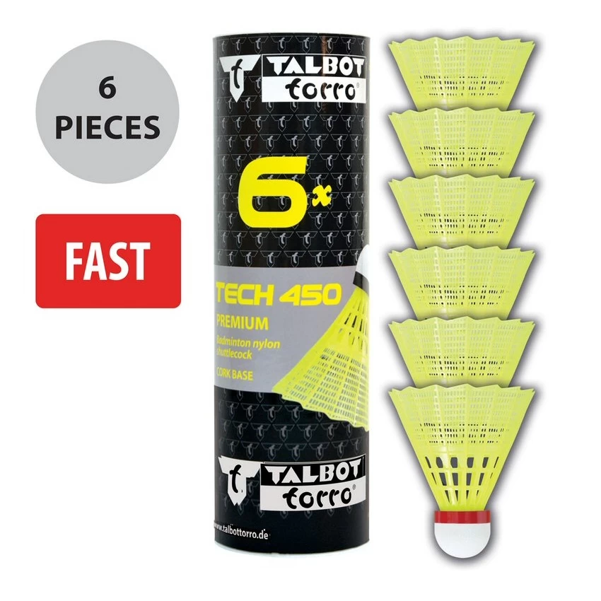 - der Tech 450 der bekannten deutsch-britischen Marke Talbot-Torro ist ein hochwertiger und langlebiger Turnier-Nylonfederball mit Korkfuß
