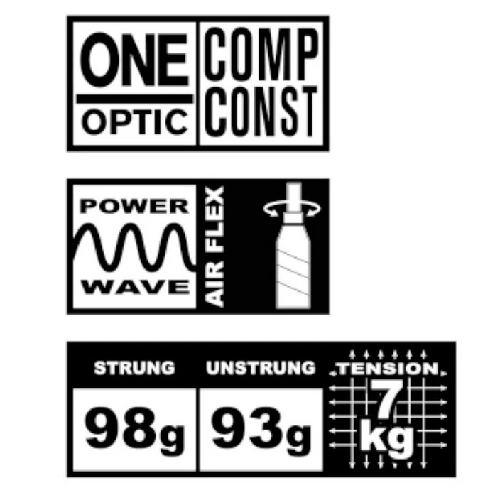 - zugleich verfügt der Schläger über sog. Powerwaves – dabei handelt es sich um Bogengänge an der Rahmenaußenseite, welche den Reibungswiderstand der Saiten minimieren und den Trampolineffekt erhöhen